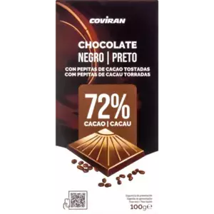 CHOC.COVIRAN NEGRO 72% PEPITAS CACAU100G